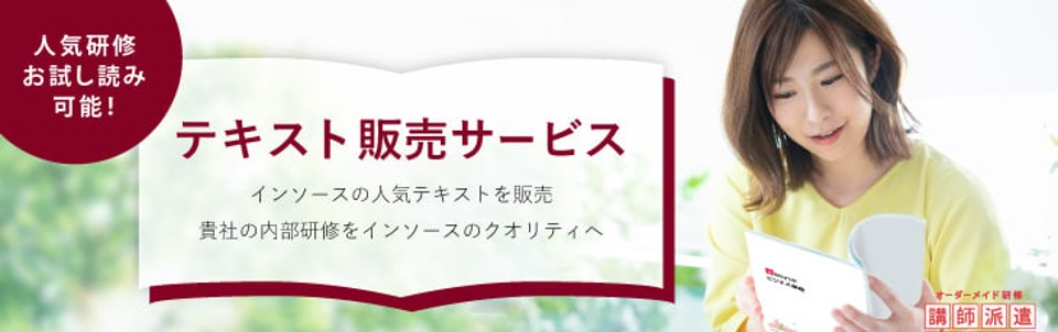 公開講座で実施している人気研修のテキストをフルカラー・くるみ製本印刷で納品するサービスです。磨き抜かれたテキストで、高クオリティな研修内製化、講師による研修のバラツキ抑制などに資することが可能です。
