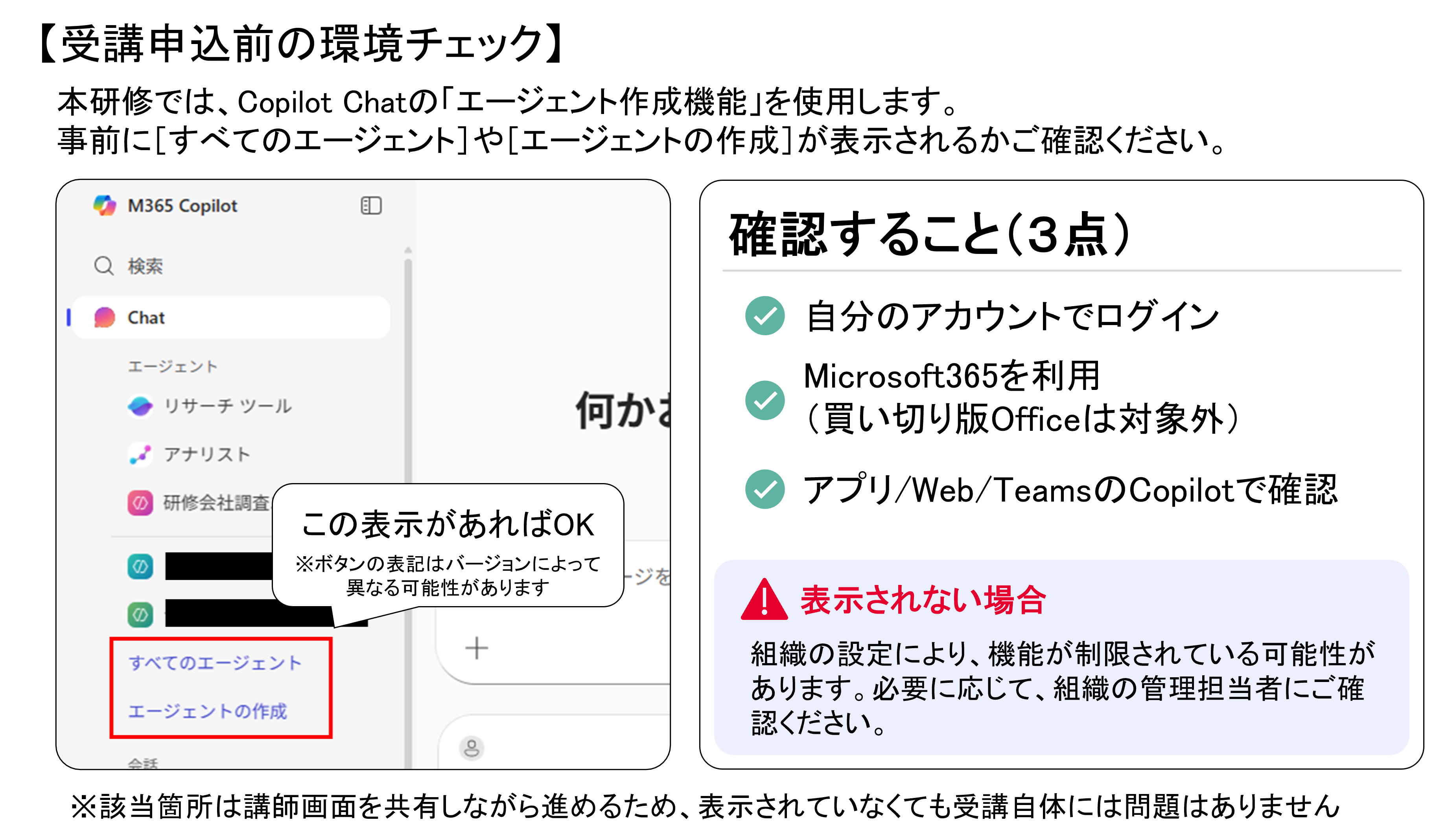※本研修で扱うのは、Copilot内で作成・利用できる軽量型のAIエージェントです