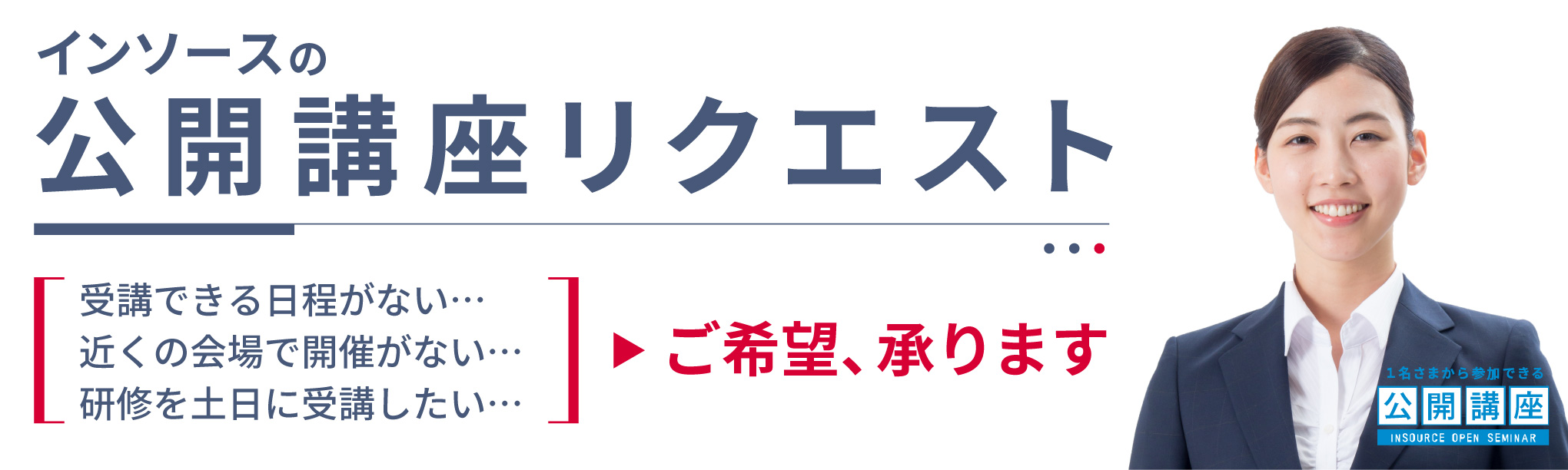 インソースの公開講座では、現在開催予定の無い日程や講座でも、 追加設定のご相談が可能です。