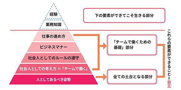 業務に関する専門知識を身につける前に、社会人としてのマインドを固めておくことが、今後活躍できる社会人の土台となります。