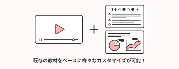動画百貨店で取り扱っている既存の教材をベースに、スライドの追加や不要部分のカット、文言変更などの簡易カスタマイズが可能です。業界特性や方針、社内事例・社内規定などを反映させることでより効果的な動画教材にすることができます。