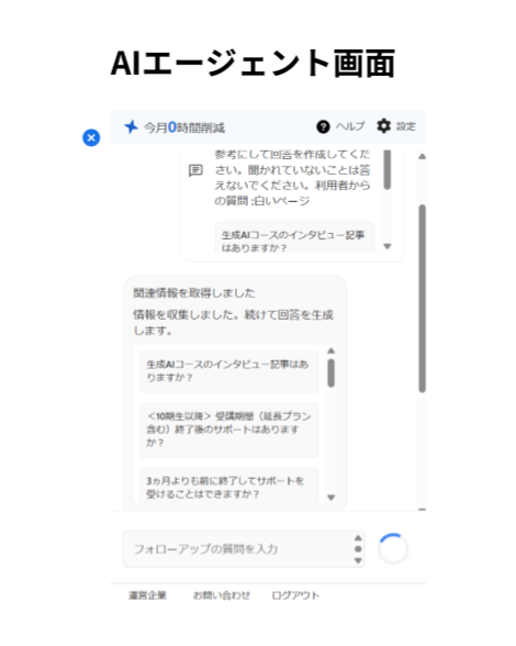 リリース後も社内活用を支援します。継続的なAIのチューニングを実施し、合わせて勉強会など社内活用の支援も可能です。