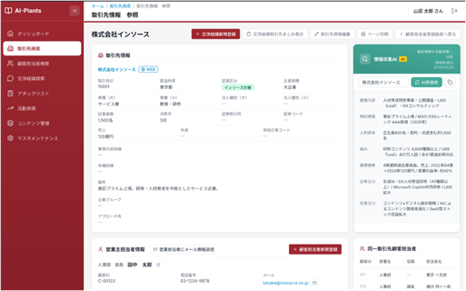 「働くを楽しくする」サービスを提供する株式会社インソース(駿河台本社:東京都千代田区、代表取締役執行役員社長:舟橋孝之、証券コード:6200、以下「当社」)は、生成AI機能を搭載した営業支援ツール「AI-Plants」(以下「本サービス」)を提供開始いたしますので、お知らせします。