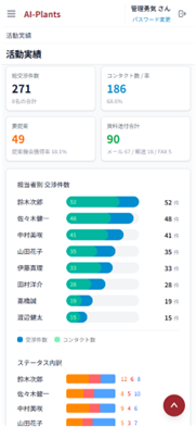1.生成AI機能を搭載 取引先企業情報の自動収集機能を皮切りに、営業活動を支援する生成AI機能を続々と追加してまいります。今後も顧客との交渉履歴の自動要約、次回アクションの提案、メール文面自動作成など、お客さまの声を反映しながら機能を拡充していく予定です。 2.UI/UXの大幅改善による使いやすさの向上 画面デザインを一新し、直感的に操作できるインターフェースへと進化させました。スマートフォンでの操作性も向上し、外出先でもストレスなく情報の入力・確認が可能です。 3.Remote-Plantsの実績ある機能を継承 顧客情報管理、交渉履歴管理、一括メール配信、アタックリスト作成、日報管理、ご近所検索、コンテンツ管理など、現場で高い評価を受けてきた機能をすべて引き継いでいます。 4.データ基盤構築による個社別カスタマイズ 当社「AI活用基盤構築支援サービス」によるデータ基盤・RAG(検索拡張生成)の 構築を伴う個社別カスタマイズにも対応いたします。社内に散在した提案書・事例・商談データ・マニュアル等をAIに連携し、提案書作成支援機能をはじめとする 高度なAI活用をご支援します。 ※ 生成AI機能における入力データの取扱いは、当社所定の利用規約・セキュリティ 条件に基づき運用します。 |