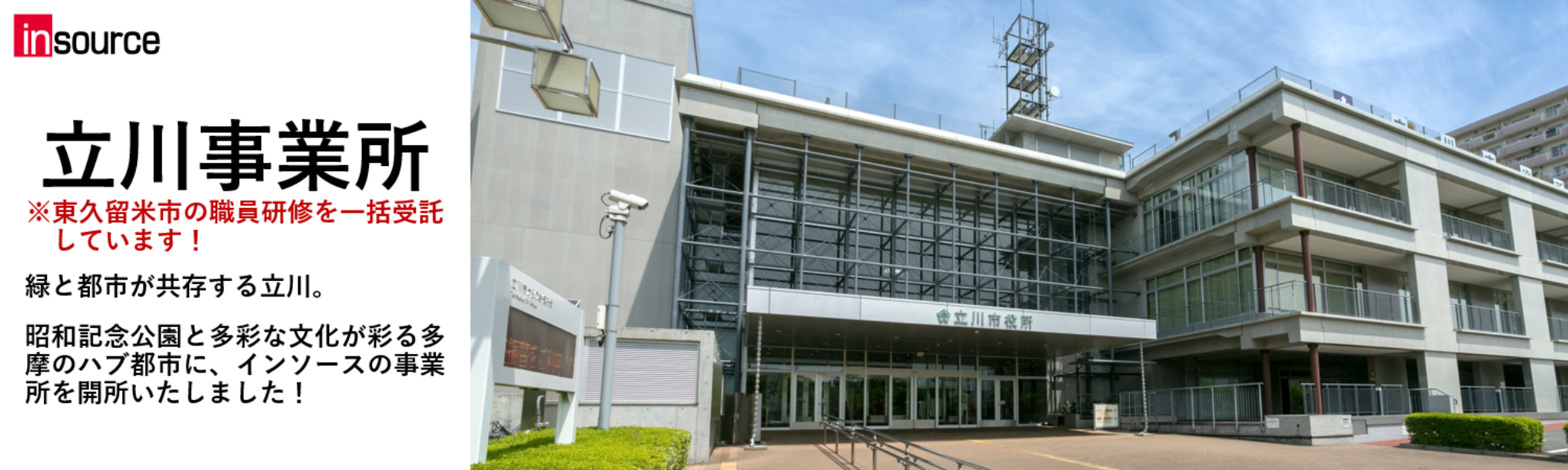 2023年3月に開所いたしました。インソースとしてずっと拠点を出したいと恋焦がれ、ついに開所に至った念願の事業所です。23区を除く都内全市町村エリアを担当しております。事業所は立川駅南口に位置しており、帰宅時には非常に人間味を感じる街で日々精進しております。一番距離が近い研修会社を目指して頑張ります!