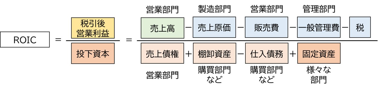 ROICを構成する数字を分解すると、必ずどこかの部門が、何らかの形でかかわっており、何かしらの打ち手を考えられるものであることが分かります。現場の業務一つひとつがROICのどの数字につながるのか、どうすれば数字を改善できるのかを考え、実践することが大切です。