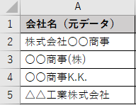 ある顧客リストで、「株式会社」「(株)」「K.K.」といった表記が混在しているとします。これをすべて「株式会社」に統一する場合を考えます。
