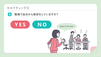 スライドの文字配置がすっきりしていること、キャラクター・ナレーション・BGM・アニメーションが効果的に使われていることで、自習を前提にした教材にふさわしいものになったと感じています。受講対象者に近い年齢の若手職員からもキャラクターの動きや声がイメージに合っている、スライド毎に要点がまとまっている、改ページ音で受講にメリハリがつくなど好評でした。