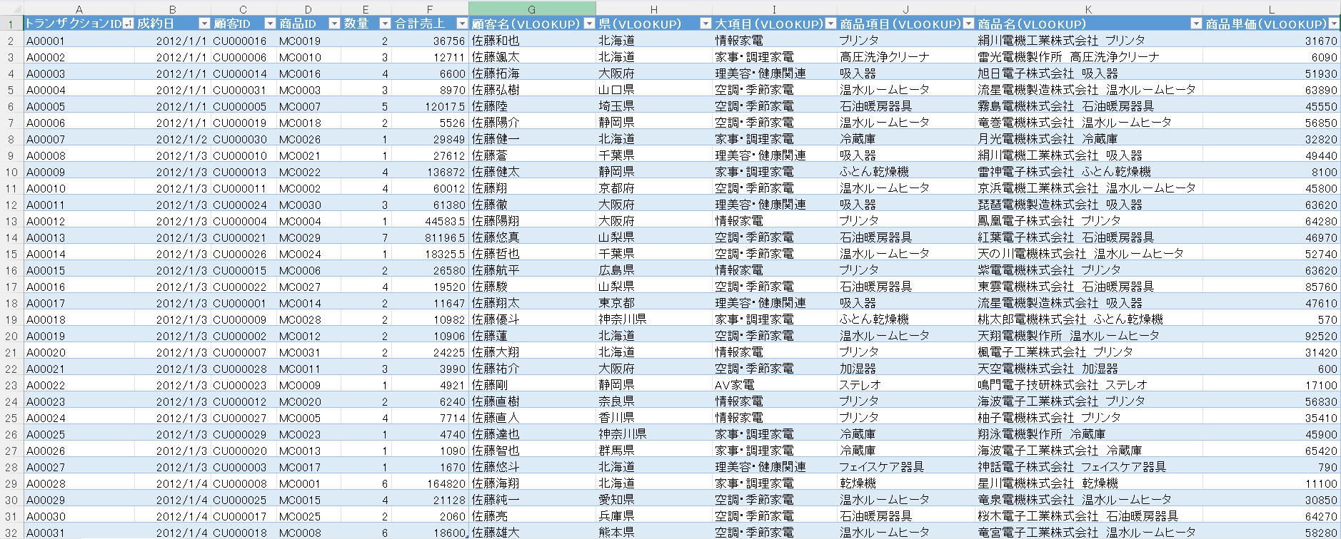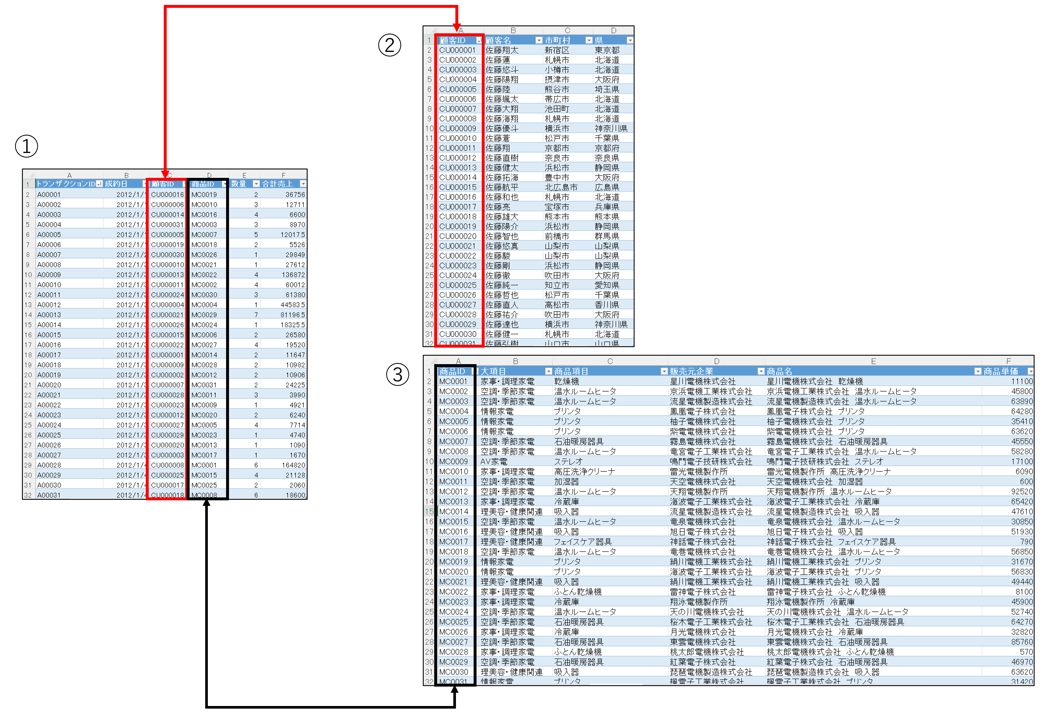 ここでは、「売上管理シート」「顧客マスター」「商品マスター」の3つのシートを1つのシートにまとめるというケースを考えてみましょう。