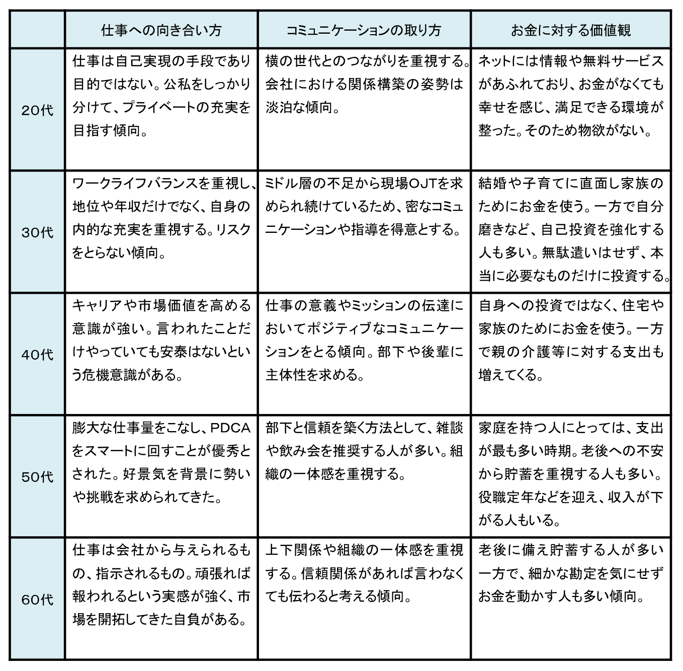 各世代の傾向(一例)