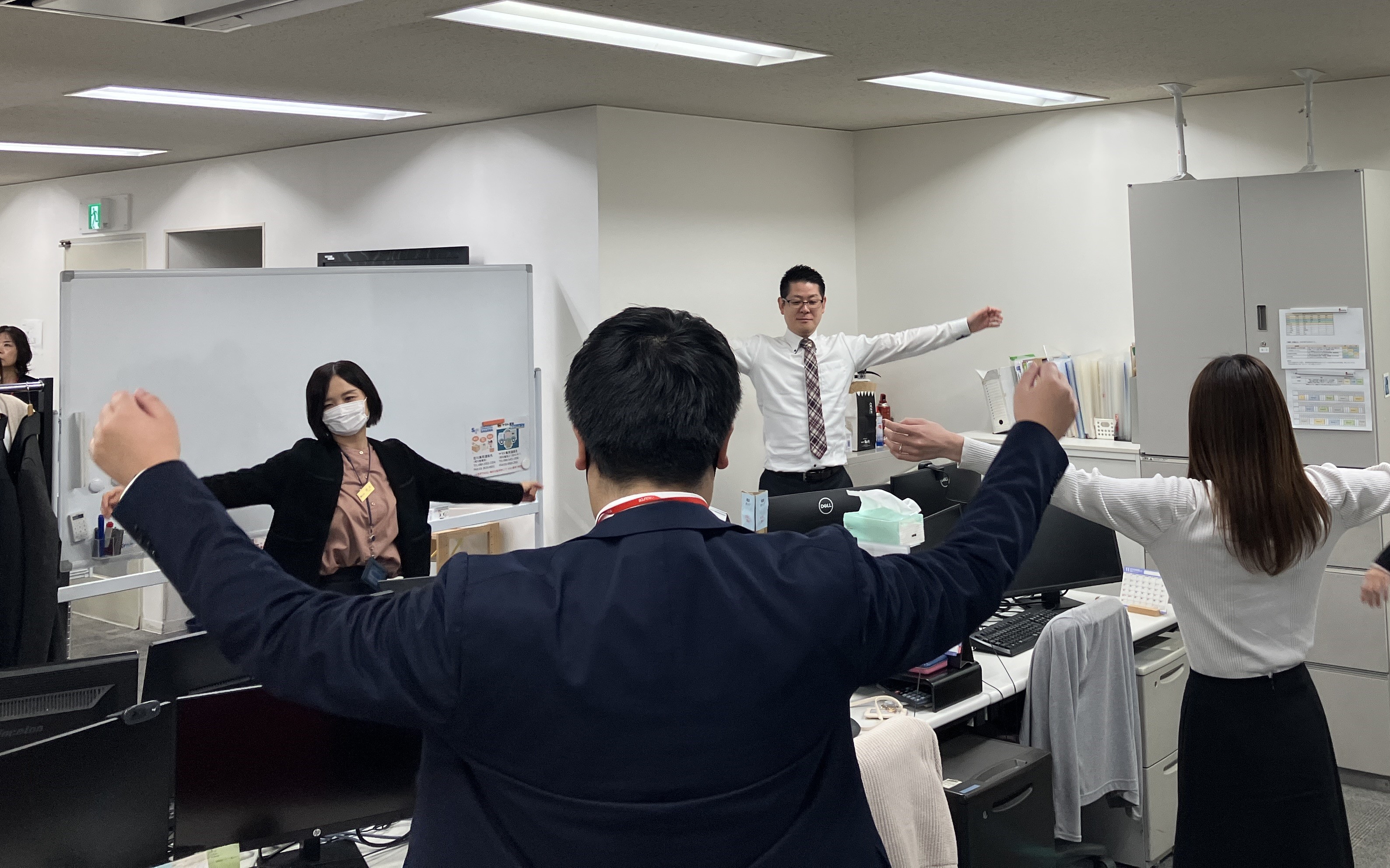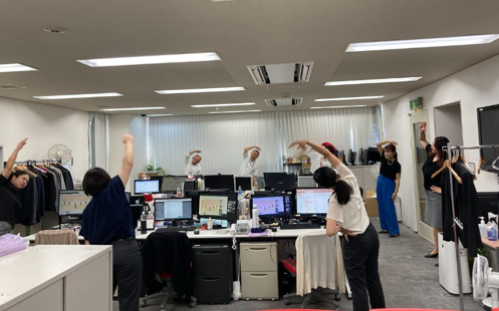全従業員がラジオ体操を実施しています。毎日実施しており、日頃の運動不足解消やフロア内のコミュニケーション活性化に繋がっております。