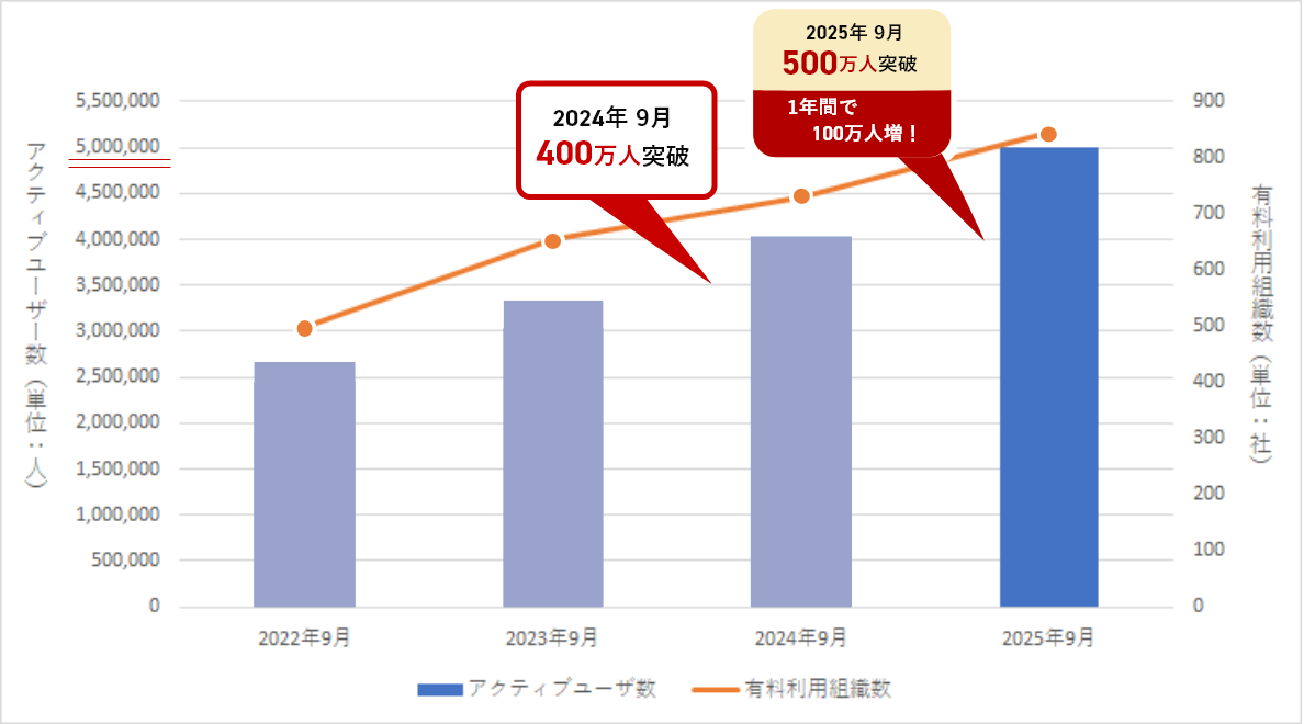 (※1)累積のユーザー数ではなく、現在ご利用中のユーザーアカウント数のみを集計した数値です。2025年9月末時点