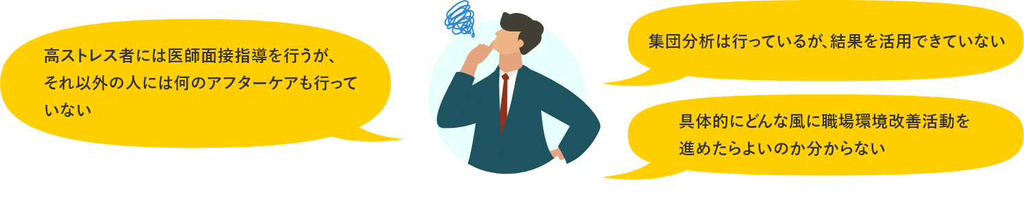 結果を活用して、職場全体がいきいきと働けるような職場環境改善活動を行いましょう。個人、職場の両面で適切なアフターフォローを行うことが重要です。