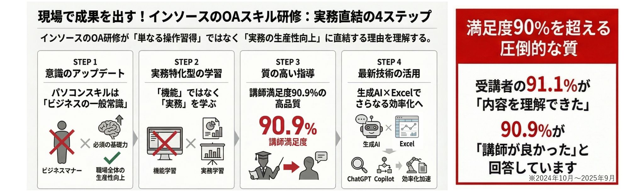 内容評価91.1%、講師評価90.9%※!「文系DX」の第一人者である当社が