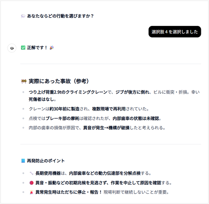 AI-OJTは、事故予防教育に特化した実践的な仕組みを備えています。