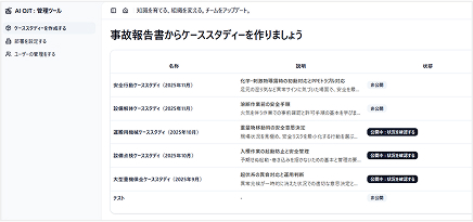 社内で作成される事故報告書をシステムに取り込むだけで、AIが2~3分でケーススタディを生成します。