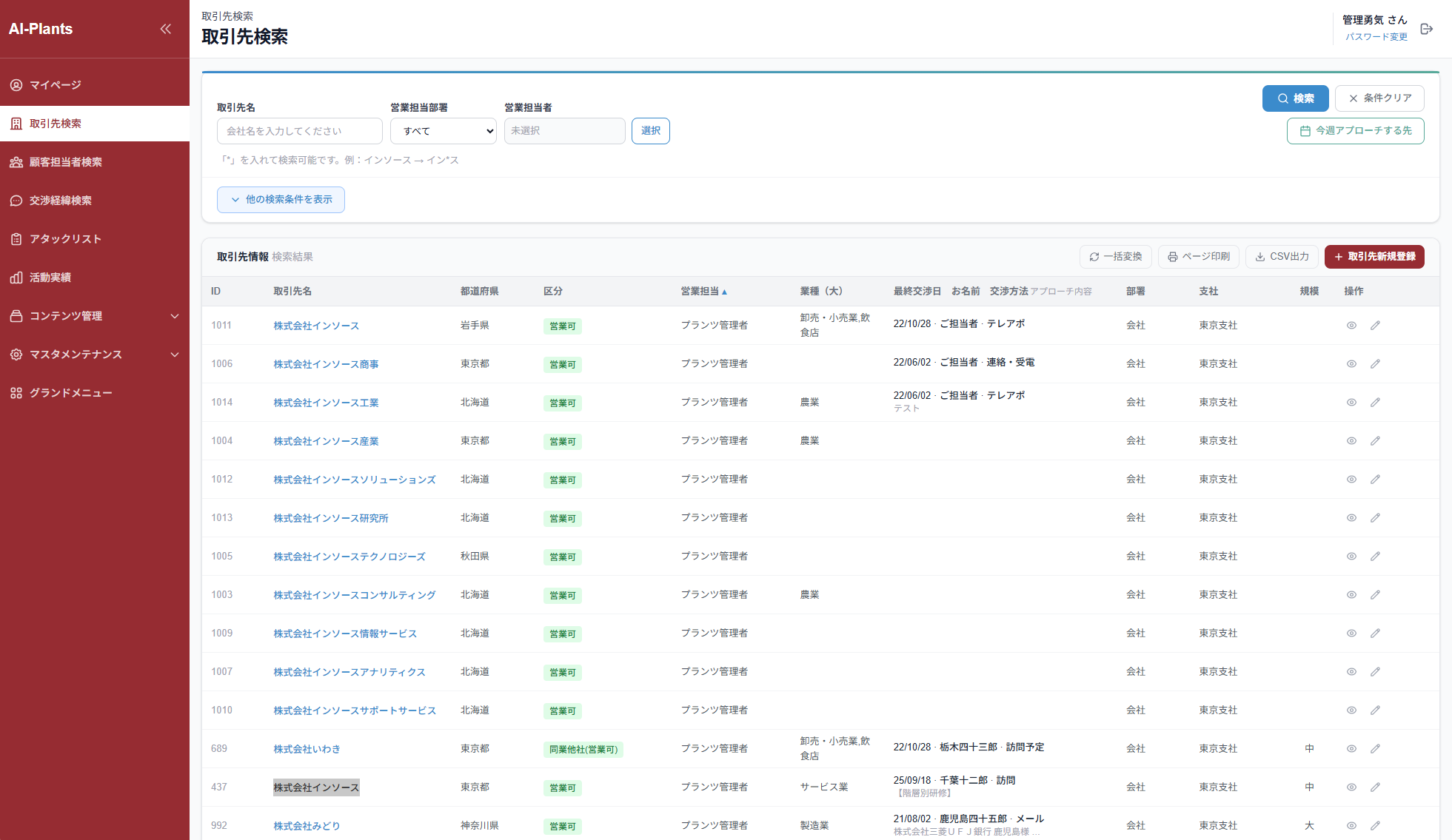 顧客情報管理、交渉履歴管理、一括メール配信、アタックリスト、日報、ご近所検索など、Remote-Plantsで高い評価を受けてきた機能をそのまま引き継いでいます。