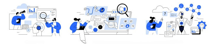 DX推進に向けた体制づくりから、「全社員へのDX知識付与」「既存業務を整理するDX推進人材の育成」「AIを活用できるスペシャリストの育成」までを長期的に支援する
