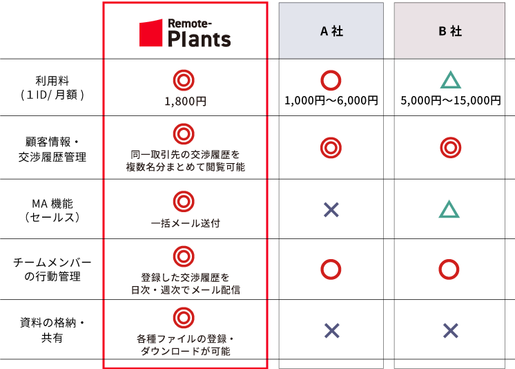 など、Remote-Plantsの機能は、チーム営業を前提に作られています。