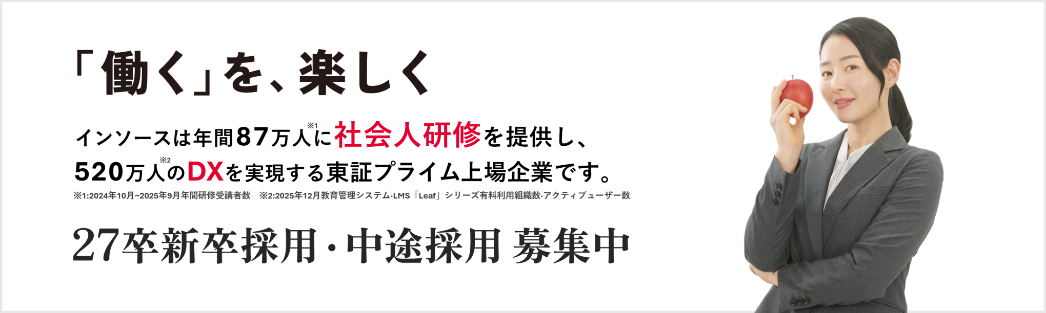 インソースグループは、個人や組織の成長に合わせた教育・研修制度が充実しております。