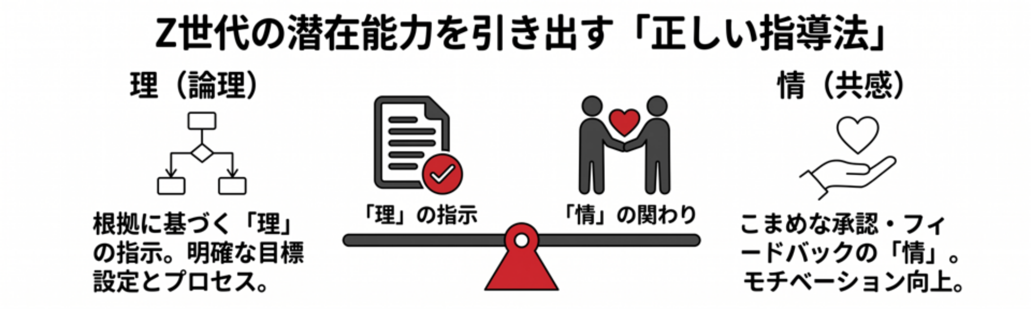 「理」:原理原則と根拠に基づいて、指示・指導・依頼をする